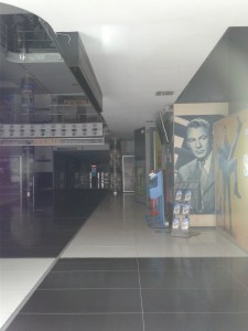I wasn’t able to get inside the theater, but did get a fuzzy picture of the lobby through the glass doors. It’s now a multiplex movie theater, but I still would have loved to see the inside.